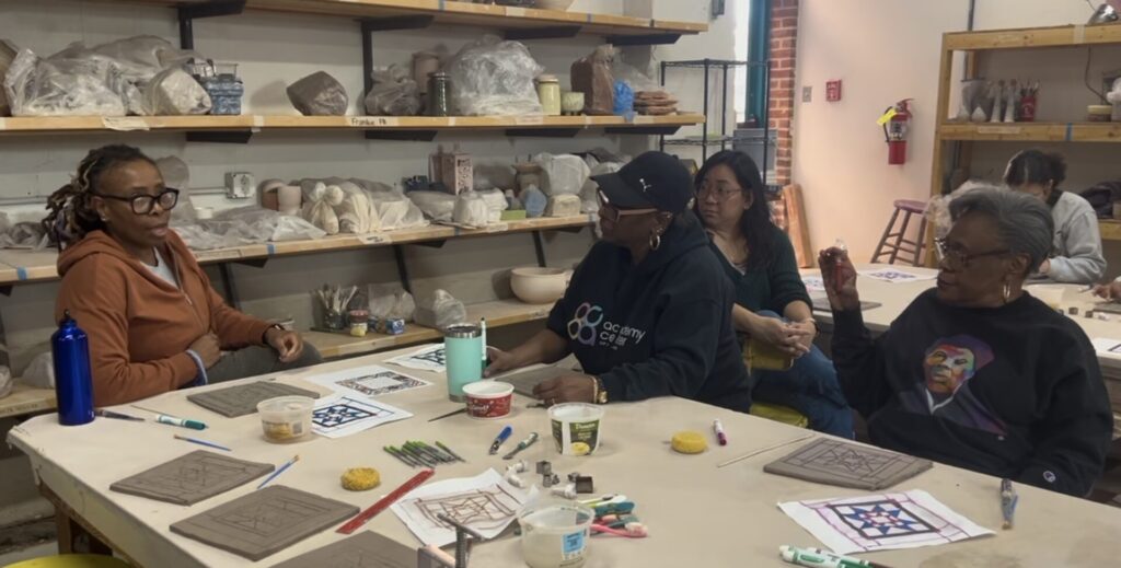 Led by artist Anna Ellis, students created Freedom Quilt-inspired trivets using a mono-print technique, transferring painted designs onto clay before shaping their pieces.A highlight of the workshop was an art talk by Veronica Jackson, who shared insights on the codes and communication methods used by enslaved individuals. She also explored how African American creativity and artistic expression flourished during this time in American history, reinforcing the power of art as a tool for resilience, storytelling, and cultural identity.