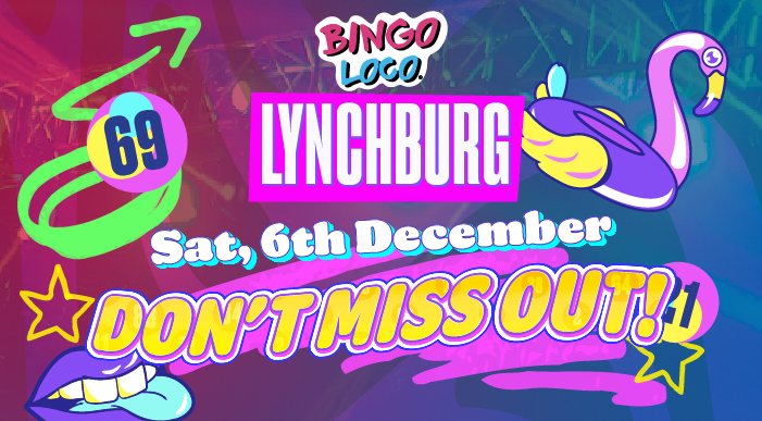 Bingo Loco has taken the world by storm with sold-out bingo rave shows in 200 locations around the globe including Dublin, Edinburgh, London, Toronto, Sydney, Dubai, and many more. Now, their immersive and interactive stage show comes to Lynchburg on December 6th! ️️