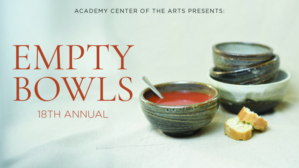 The Eighteenth Annual Empty Bowls event to benefit the Daily Bread will be held on Saturday, March 21, from 11:00 am – 1:30 pm, at the Academy Center of the Arts Warehouse Theatre. With the purchase of a ticket, guests are able to pick out their favorite bowl(s), enjoy soup tastings, and engage with Lynchburg Daily Bread staff and volunteers. Proceeds benefit the Lynchburg Daily Bread.
