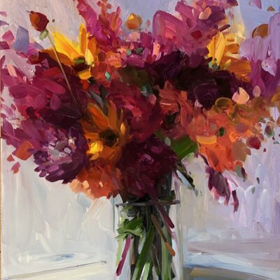 Amy Brnger, from Eliot, Maine, has painted the natural world for as long as she has been an artist. She enjoys painting flowers from her garden, interior views of her home, and forgotten, overlooked landscape views. Her paintings are expressive, energetic, and attempt to capture the changing nature of living things. She also teaches painting, focused largely on alla prima flowers and en plein air landscape, both in-person and online. Her work can be seen at amybrnger.com and amybrnger.podia.com. She is represented by galleries in the Maine, New Hampshire, Vermont, Massachusetts, and Virginia.