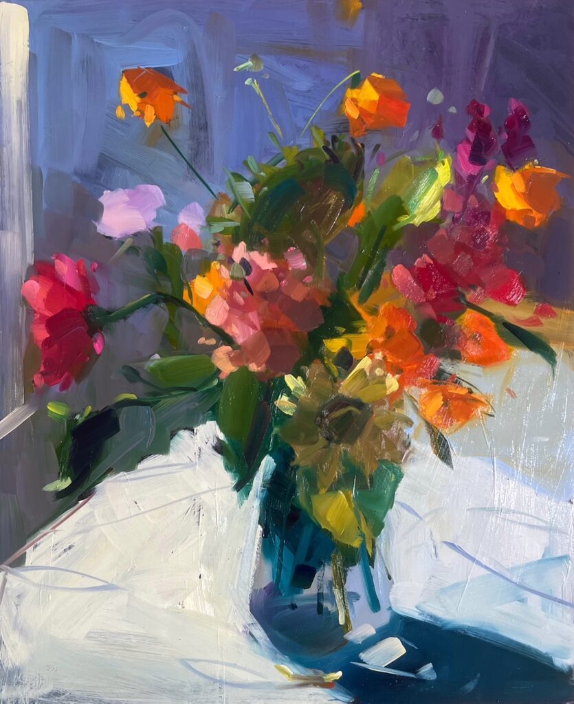 Let’s work quickly and with purpose, capturing the essence of flowers in single session, alla prima painting. Our work together will include: